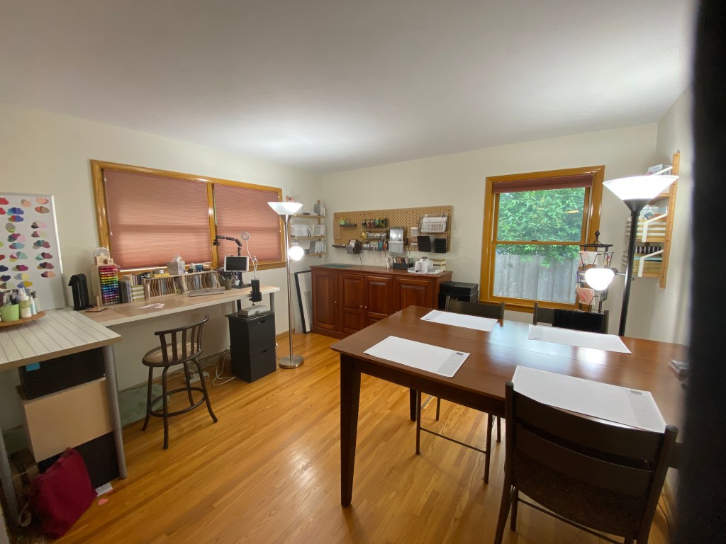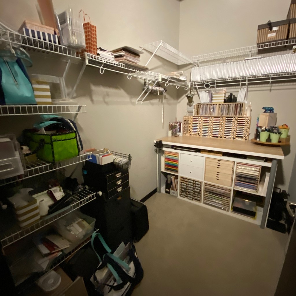 I started using “inkpad” the first move after being in paper crafting for a few years, when I had to start a new email. That was back when your email was associated with your internet provider. When I joined Splitcoaststampers I used it again and it pretty much stuck as my online identity. My first blog and Facebook page were called From My Ink pad, with “Ink pad” indicating the place I stamped. That was long before craft room was a common room in your house. Anyway I’ve had many “ink pads”, from expansive to tiny. They all work!